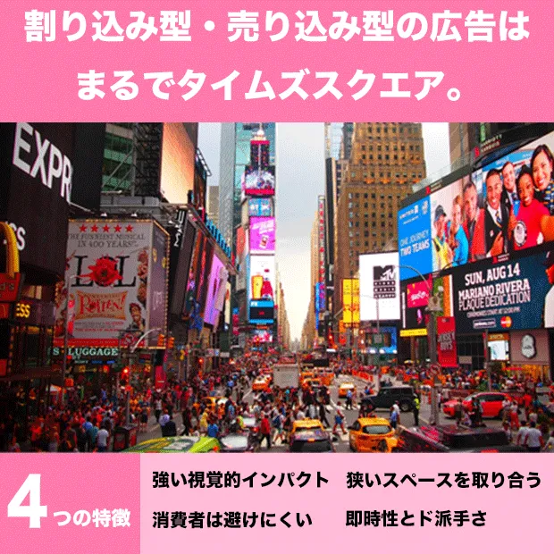 このような広告はニューヨークのタイムズスクエアに例えられる。
