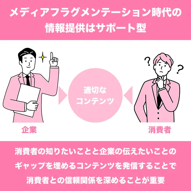 ここでいう適切とは、「企業が伝えたいこと」と「消費者が知りたいこと」のギャップを理解して、それを埋めるようなコンテンツで消費者の情報収集をサポートすることである。